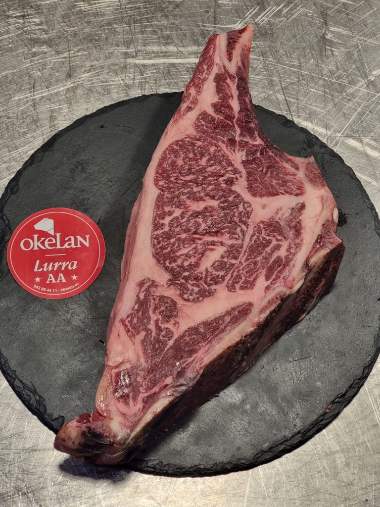Una carne con historia. Procede de ejemplares seleccionados por Okelan entre razas autóctonas o cruces criados de forma tradicional en la península. Su categoría «Supremo Ancestral» implica edad, estructura muscular desarrollada y maduración larga que potencia al máximo su intensidad.